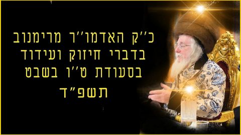 כ”ק האדמו”ר מרימנוב שליט”א בדברי חיזוק ועידוד על המצב בארץ ישראל ובעולם בסעודת ט”ו בשב